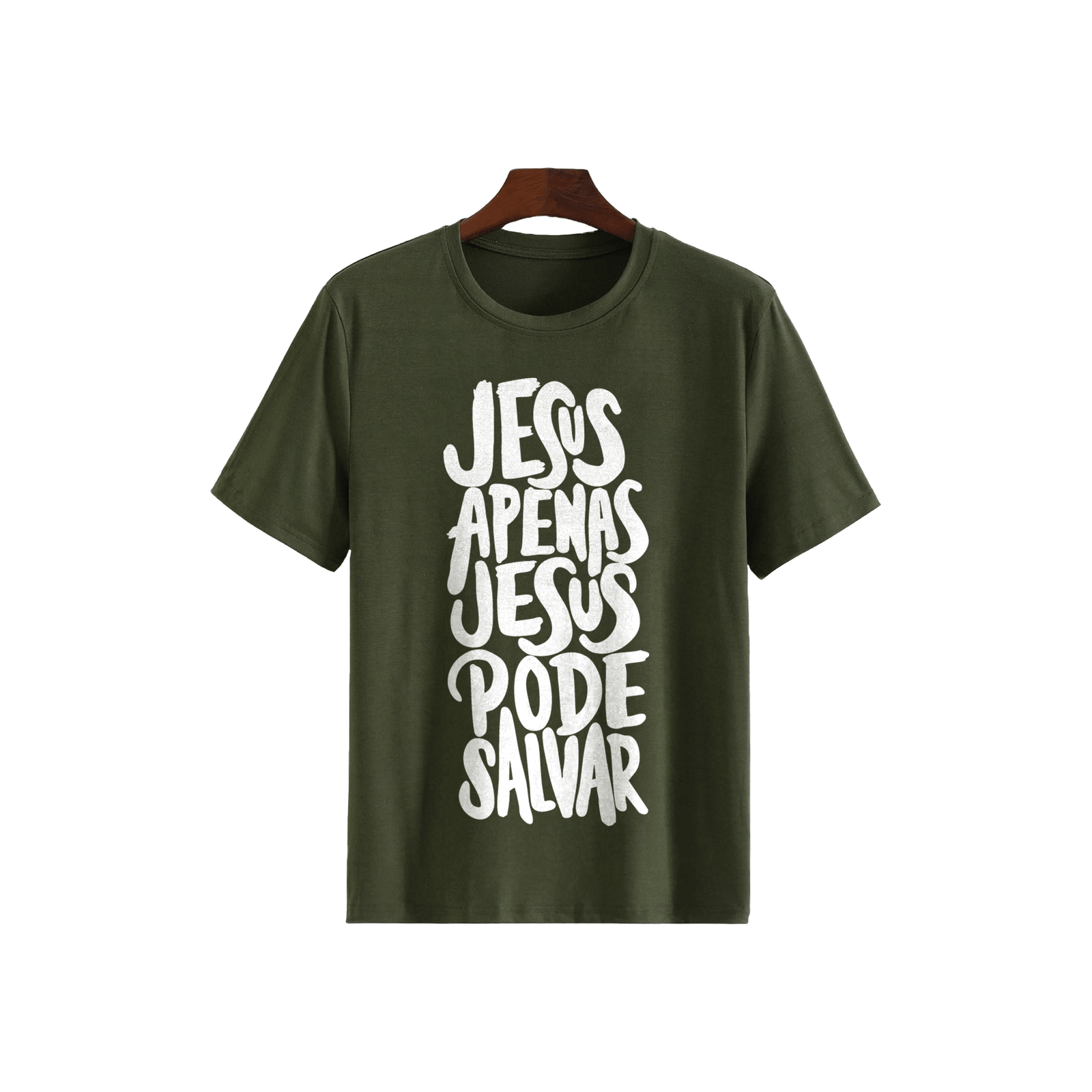 Keep it simple yet meaningful with the “Jesus Apenas” Typography Tee in a deep olive green shade. Designed with bold handwritten-style text, this tee delivers a clean aesthetic with a strong message. Its minimal design makes it easy to style, whether you’re going for a casual outfit or a subtle statement look.